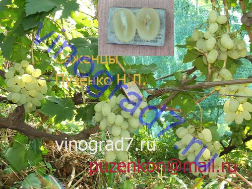 Долинский столовый, Аркадия устойчивая (Кеша1 Х Аркадии), раннего срока созревани 125 дней, сильнорослый, обоеполый. Селекция Вишневецкого Н.П. Кисти крупные 400-600 гр с красивыми белыми ягодами размером 25х30-35. Форма не склонна к горошению. Устойчива к растрескиванию, серой гнили, основным грибковым заболеваниям. Долго сохраняется на кусте без потери вкусовых качеств. Морозоустойчивость -23 Транспортабельная.