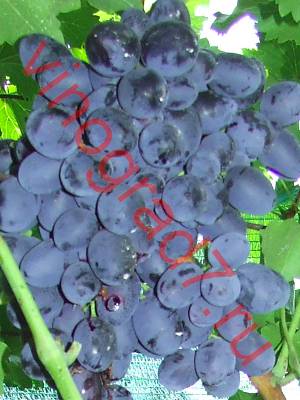 Кусты среднерослые. Грозди крупные (700 г и более), рыхлые. Ягоды крупные и очень крупные 28x23 мм (7-10 гр), овальные, темно-синие. Мякоть мясисто-сочная, гармоничного вкуса. Кожица плотная. Сорт не повреждается поражается осами. Урожайность высокая. Урожай долго может висеть на кустах, можно использовать на хранение.
